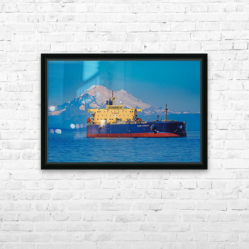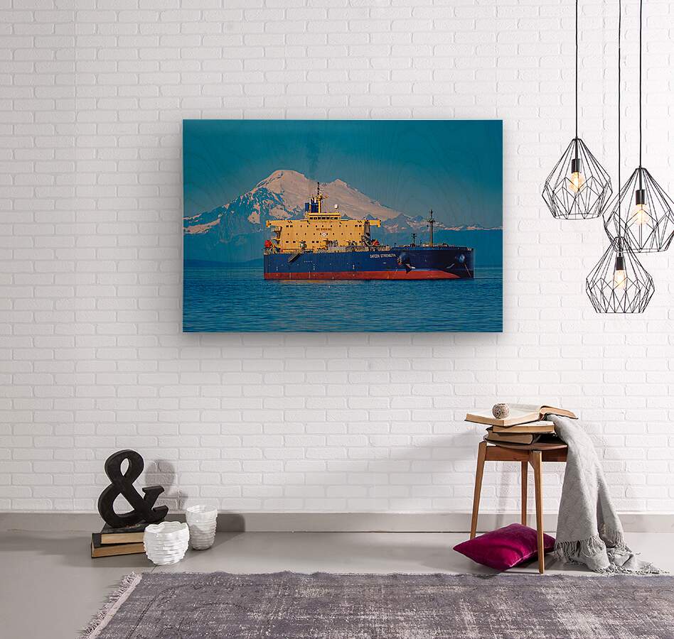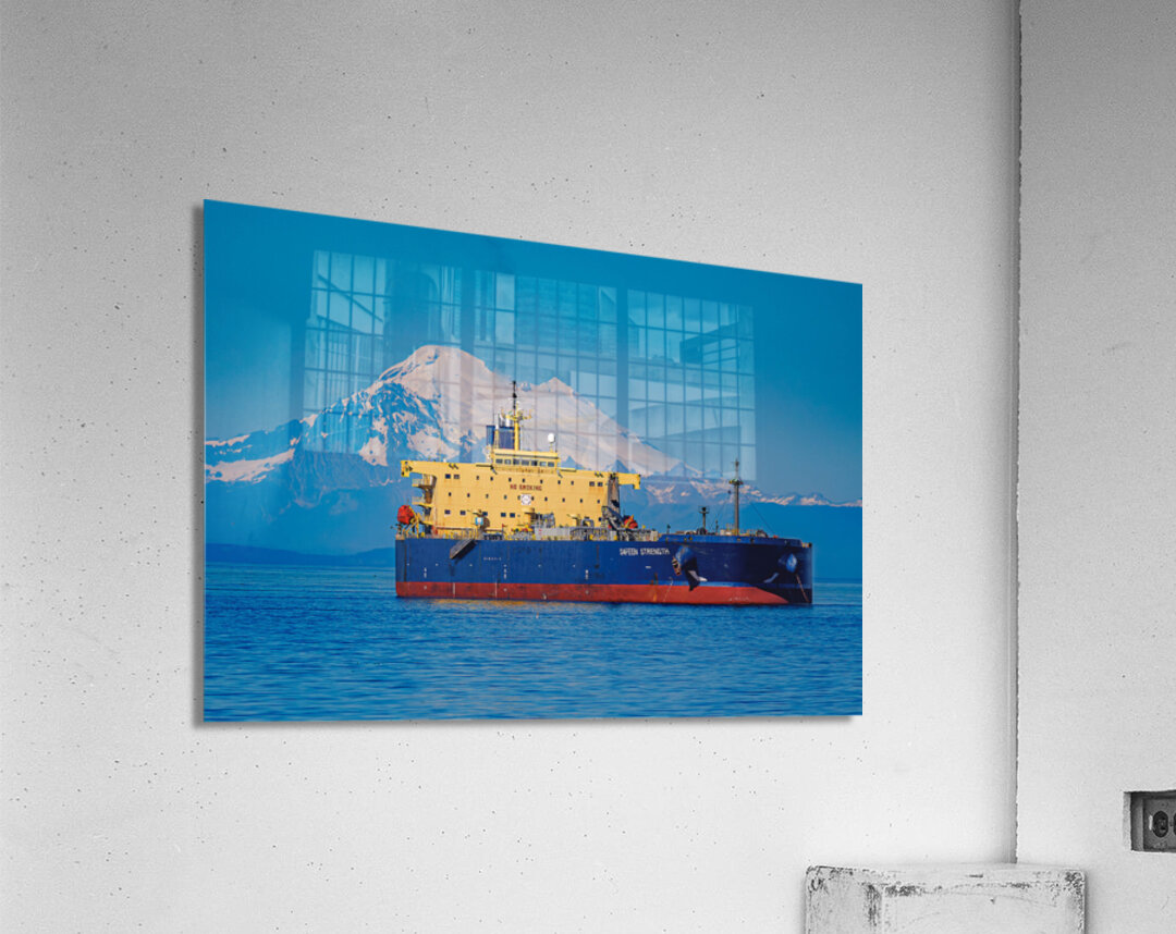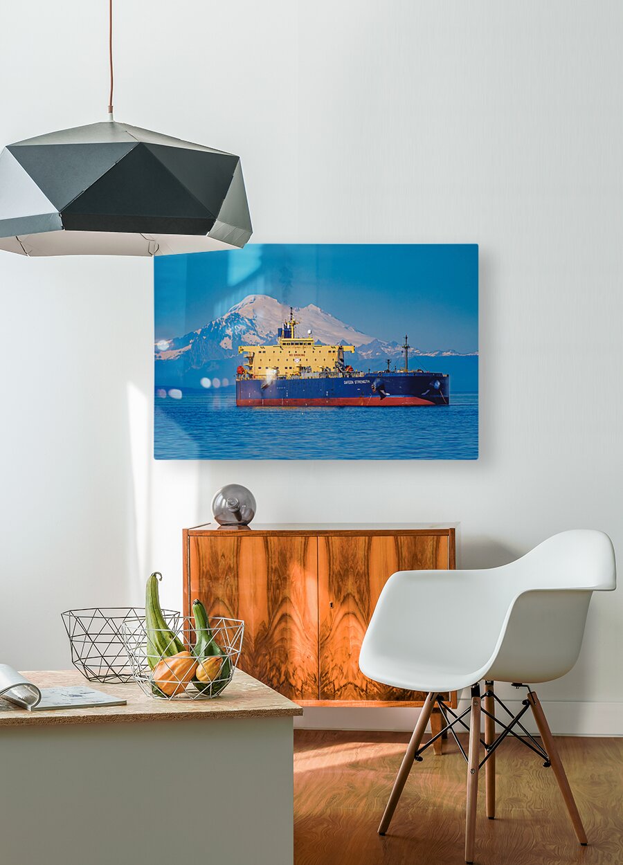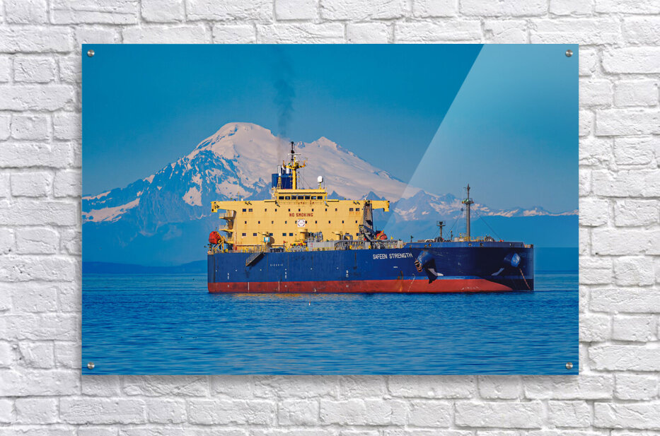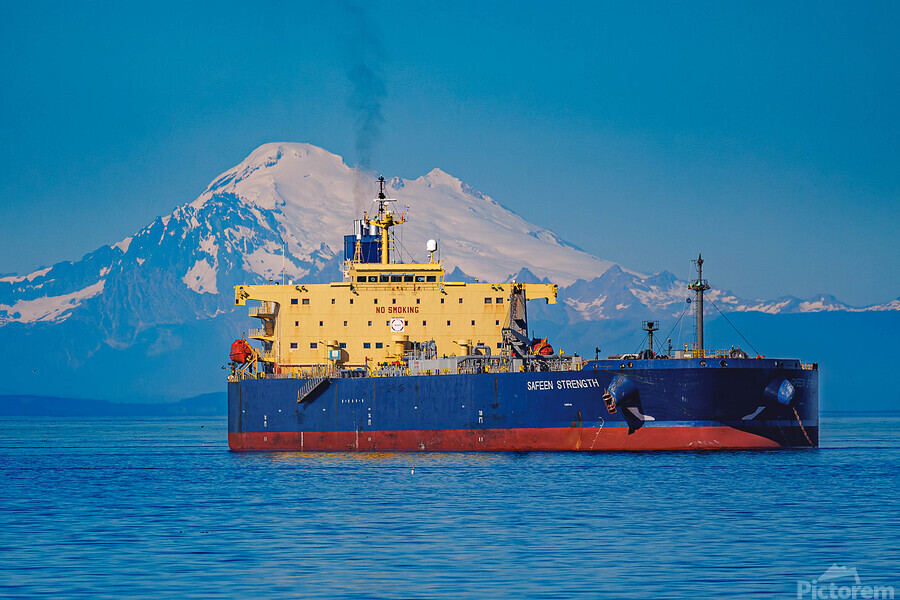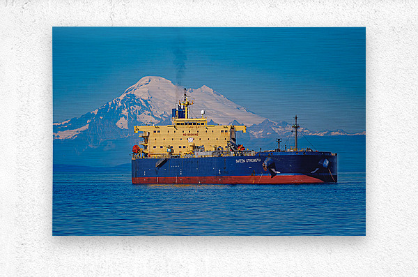 The Safeen Strength, moored in Port Angeles, WA, overshadowed by Mt. Baker.